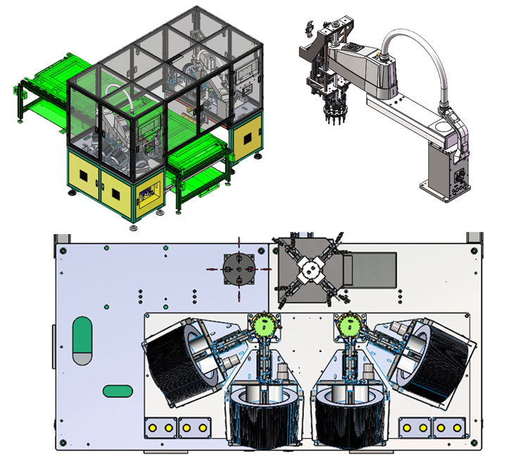 2、设备主体机构是使用4轴机械手带动多头电批,通过视觉识别定位后,进行螺丝锁付作业;